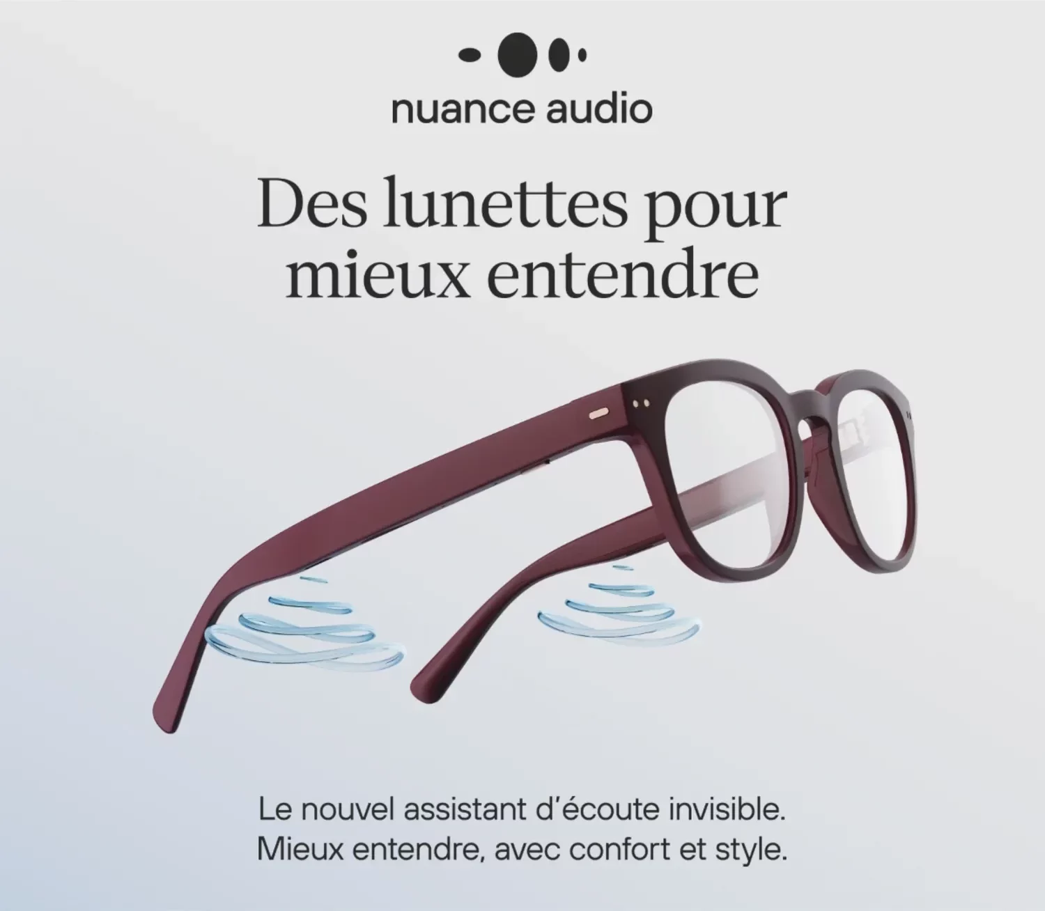 Les Nuance Audio sont les premières lunettes auditives connectées qui allient correction visuelle et aide auditive dans une monture élégante et discrète.